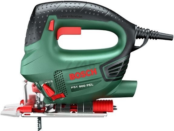 Электролобзик BOSCH PST 800 PEL (06033A0101) — для работы в домашней мастерской. Система Bosch Electronic позволяет выбрать регулировку частоты ходов с помощью кнопочного выключателя, обеспечивая лёгкое начало пиления с учётом свойств обрабатываемого материала. Модель подходит для работы с твердыми или хрупкими материалами, благодаря 4-ступенчатому орбитально-маятниковому движению обеспечивается легкость управления, высокая производительность и оптимальное прохождение кривых. Система гашения вибраций с линейной балансировкой и мягкие накладки на рукоятку гарантируют комфорт и точность пиления. Для пиления под углом опорную плиту можно повернуть влево или вправо на угол до 45°. Система Bosch CutControl точно ориентирует и позволяет соблюдать линию пропила при стандартном и криволинейном пилении. Чистая работа без помех возможна за счет подключения системы пылеудаления и функции сдува опилок. Заменить пильное полотно можно легко и быстро благодаря системе Bosch-SDS. Лобзик оснащен отсеком для хранения пильных полотен, который вмещает до 6 пилок.Кабельный ввод с подвесом обеспечивает удобство хранения инструмента: его можно компактно подвесить в любом удобном месте.